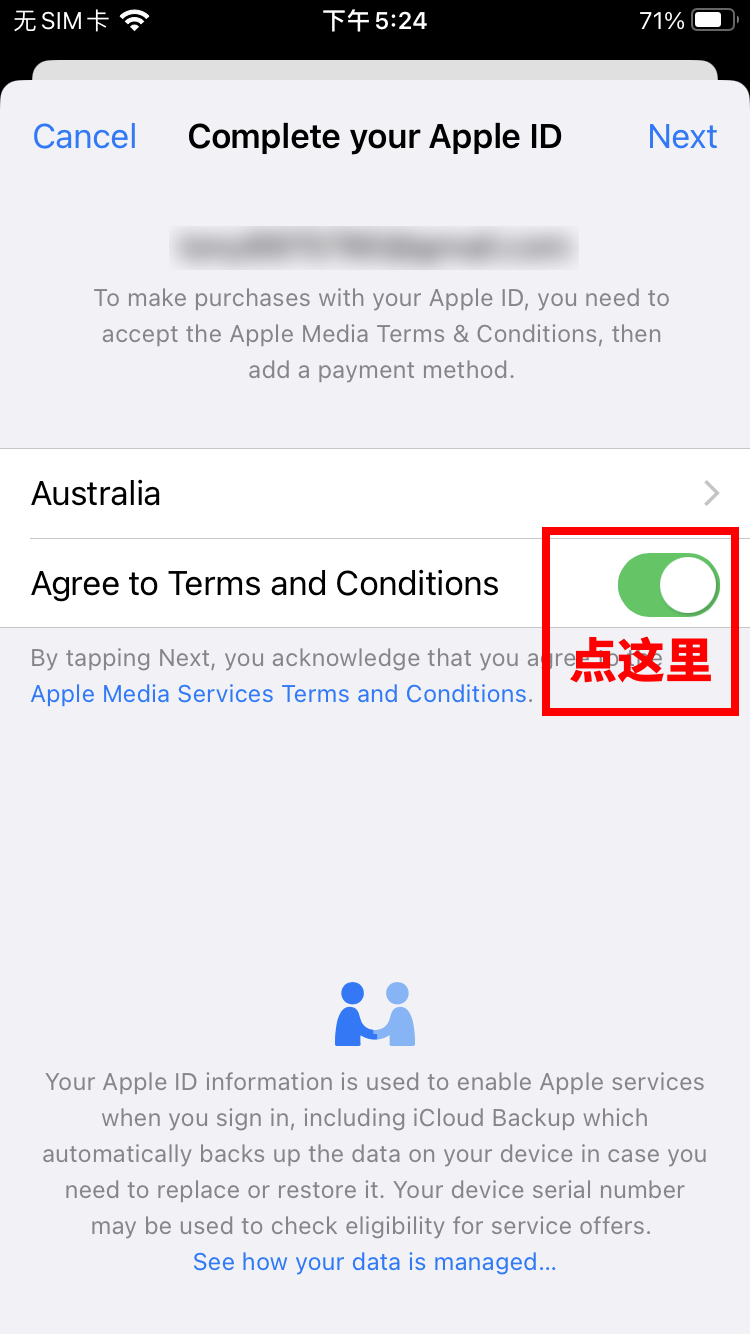如何注册澳大利亚 Apple ID 1打开 appleid.apple.com选择【创建您的 Apple ID 】 2您需要准备: 邮箱:从未注册 Apple ID 的真实邮箱 手机号:中国大陆手机号 3验证您的邮箱和手机号 4当进入该页面您的澳大利亚 Apple ID 已注册成功 5打开 App Store ,点右上角头像滑到屏幕底部,退出登录 6滑到屏幕顶部,用新建的澳大利亚 Apple ID 登录在弹窗中点【Review】 7同意条款,根据图片提示填写街道、电话、邮编等信息,点【Next】 8至此,您的澳大利亚 Apple ID 已可用 返回